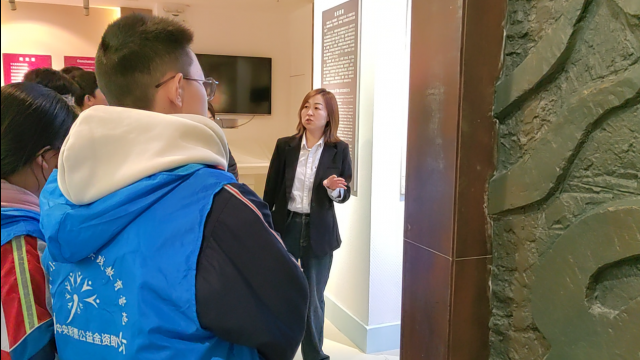 研学活动分为三站,第一站到云冈陈列馆。云冈学学院朱丽老师以先民踪迹、秦汉名邑、北魏都城、辽京陪都、明清重镇五个主题讲述古代大同的盛世京华,向学生介绍云冈文化研究陈列馆的展品为美术学院师生雕塑绘画作品。在参观大同文化瑰宝环节,朱丽与研学师生就位居全国前列的大同历史文化遗产及非物质文化遗产内容进行积极互动,然后带领研学师生进入陈列馆的核心区域——云冈石窟展区。研学师生们亲自体感我校新陈展的云冈18窟VR系统及云冈石窟展示框,并讲述云冈石窟艺术特征及其体现的梵相汉韵的多民族融合历史演变。