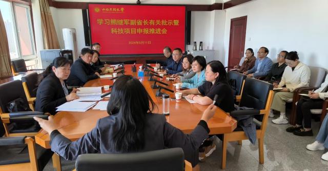 2024年5月11日,科学技术部组织各学院代表学习熊继军副省长有关批示暨召开科技项目申报推进会,会议由科学技术部部长康淑瑰主持,副校长石凤珍教授出席,学校各理工科学院负责人和部分科研骨干参加了会议。