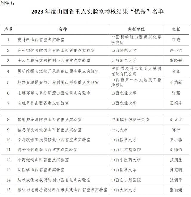 近日,山西省科技厅发布了2023年度重点实验室考核评价结果,我校微结构电磁功能材料厅市共建山西省重点实验室被评为“优秀”等次,受到了山西省科技厅的通报表扬,并给予建设经费支持。2023年考核结果为优秀的全省共15家省重点实验室。据悉,我省目前有156家省级重点实验室,其中厅市共建山西省重点实验室17家。